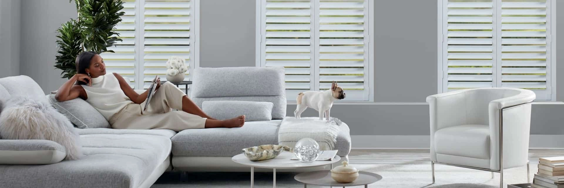 Plantation Shutters: The rigid louvers in classic plantation shutters fashion a solid barrier over windows when closed to block out light and sound. The hard components are ideal for blocking light or sound waves.When the louvers are engaged, they can also deflect light and sound for partial protection that allows for natural light and airflow. Hunter Douglas makes three types of plantation shutters: